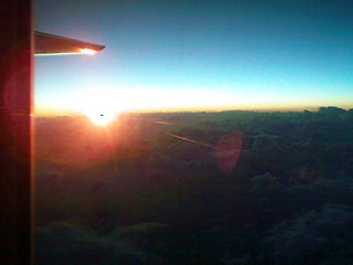 The flight was nonstop from San Francisco to Sydney. It flew a straight line West and South for fourteen hours. It took off at 11pm, chasing after where the sun had previously set. After nearly 14 hours, the sun finally caught up again, from the East! I estimate that the sun rose at apparently approximately 50% of its usual rate.![]()
